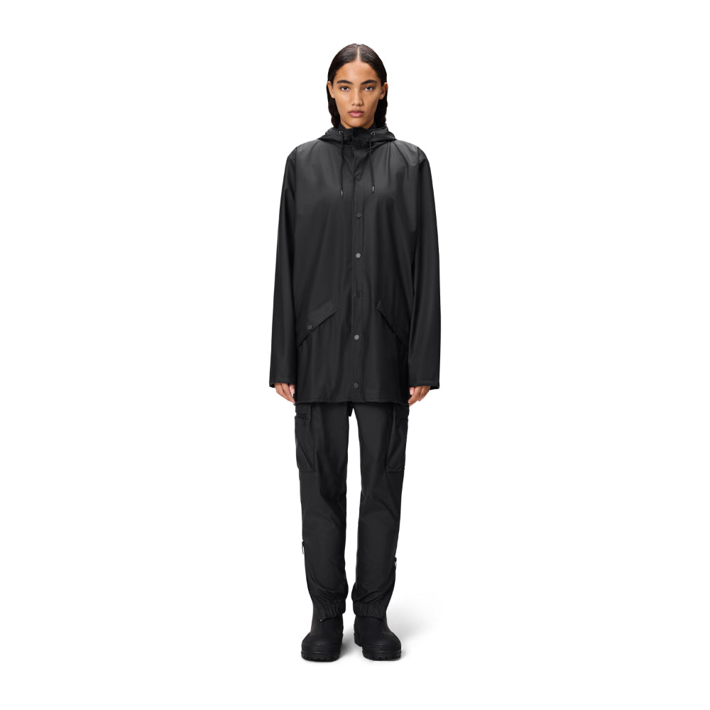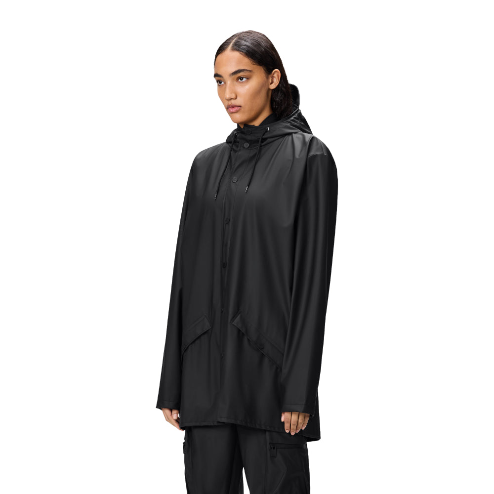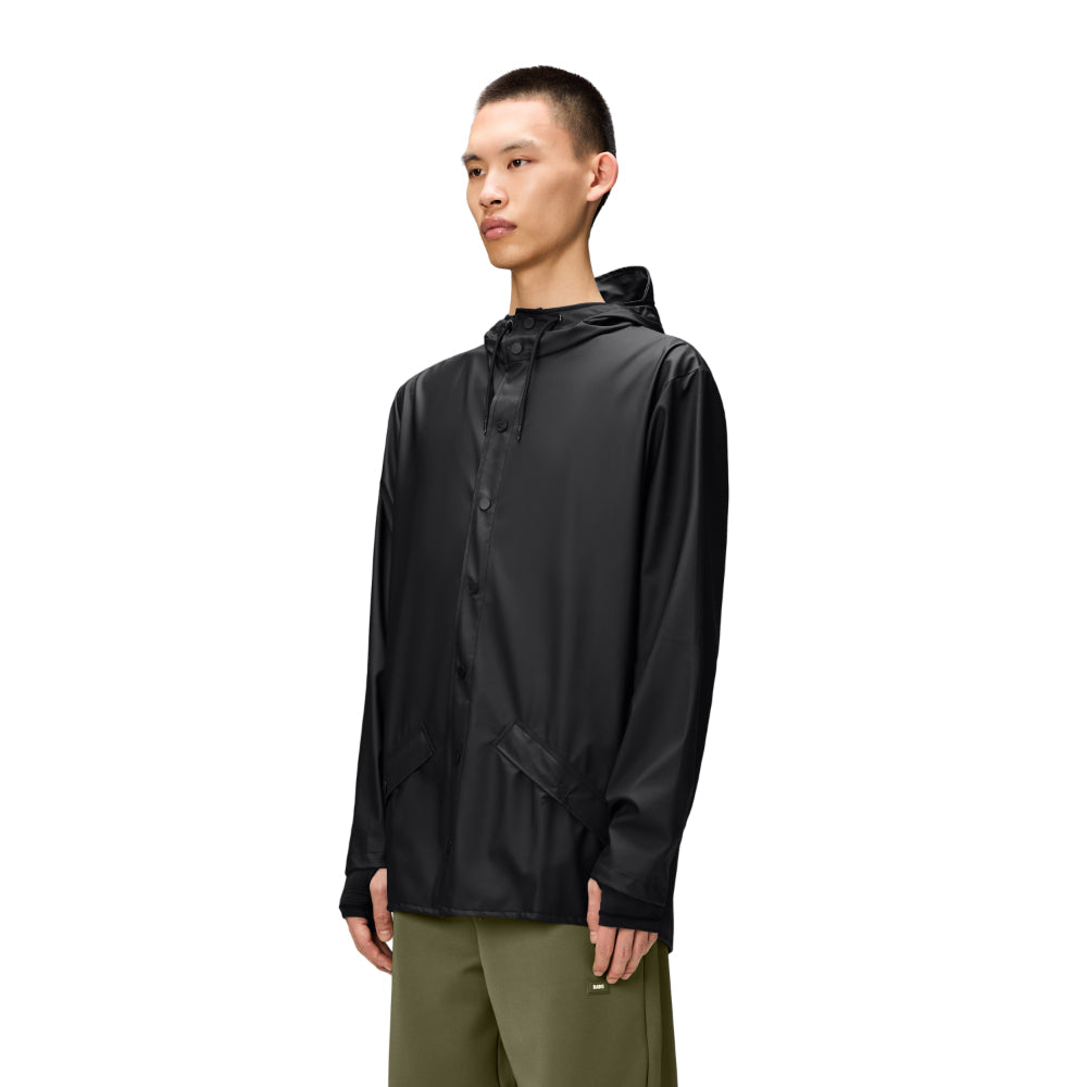 Jacket is cut from Rains' signature PU fabric and features welded seams. The finish is lightweight with a smooth feel.