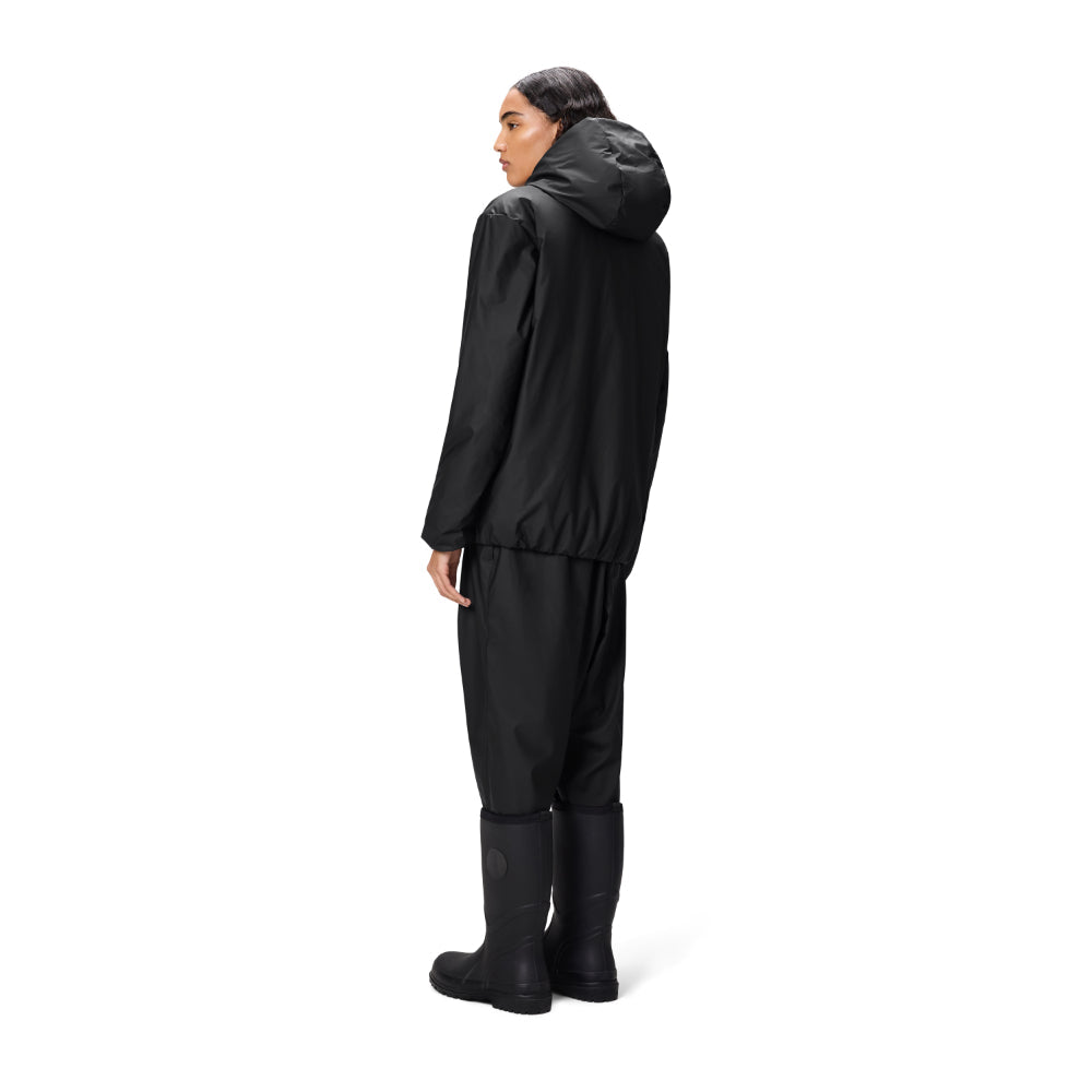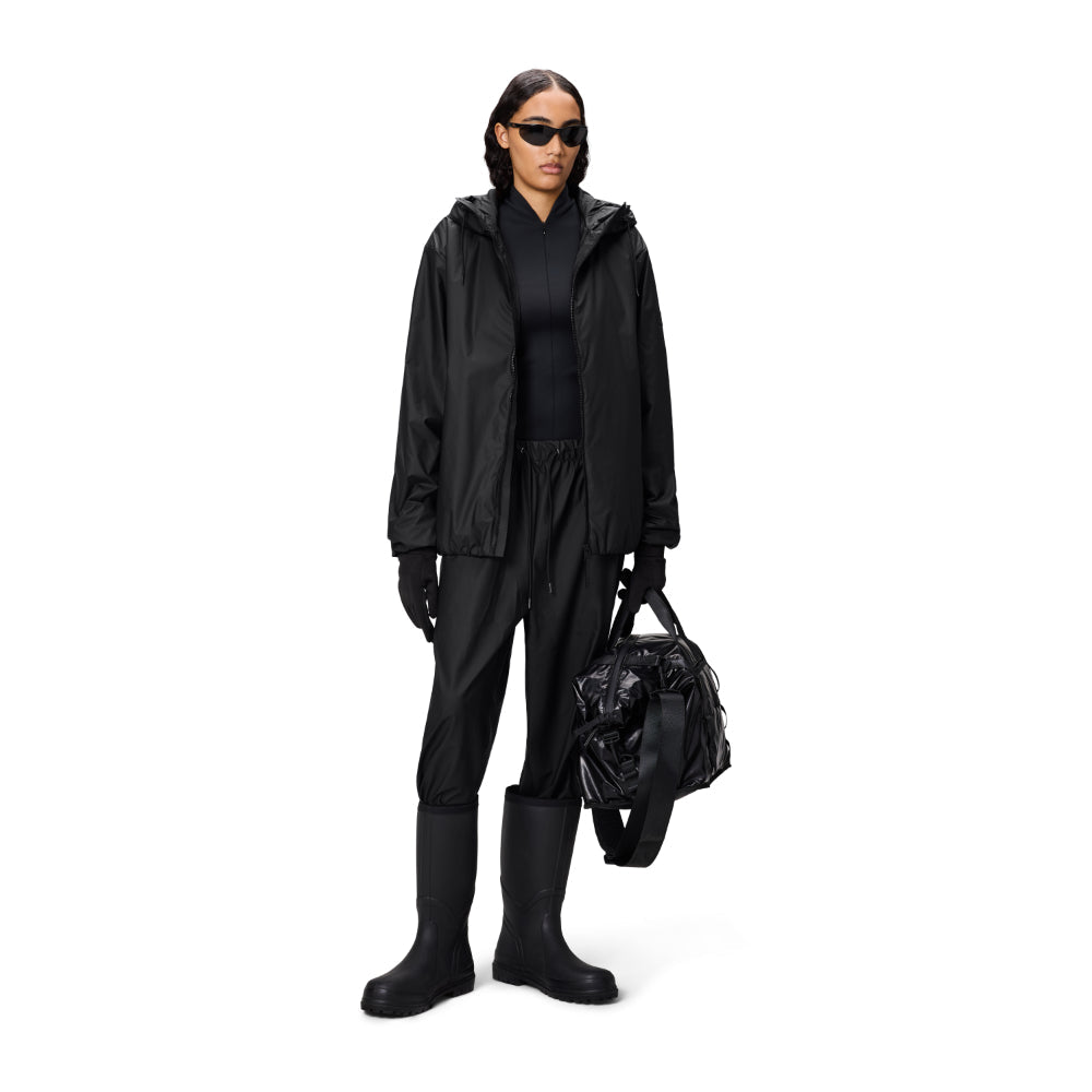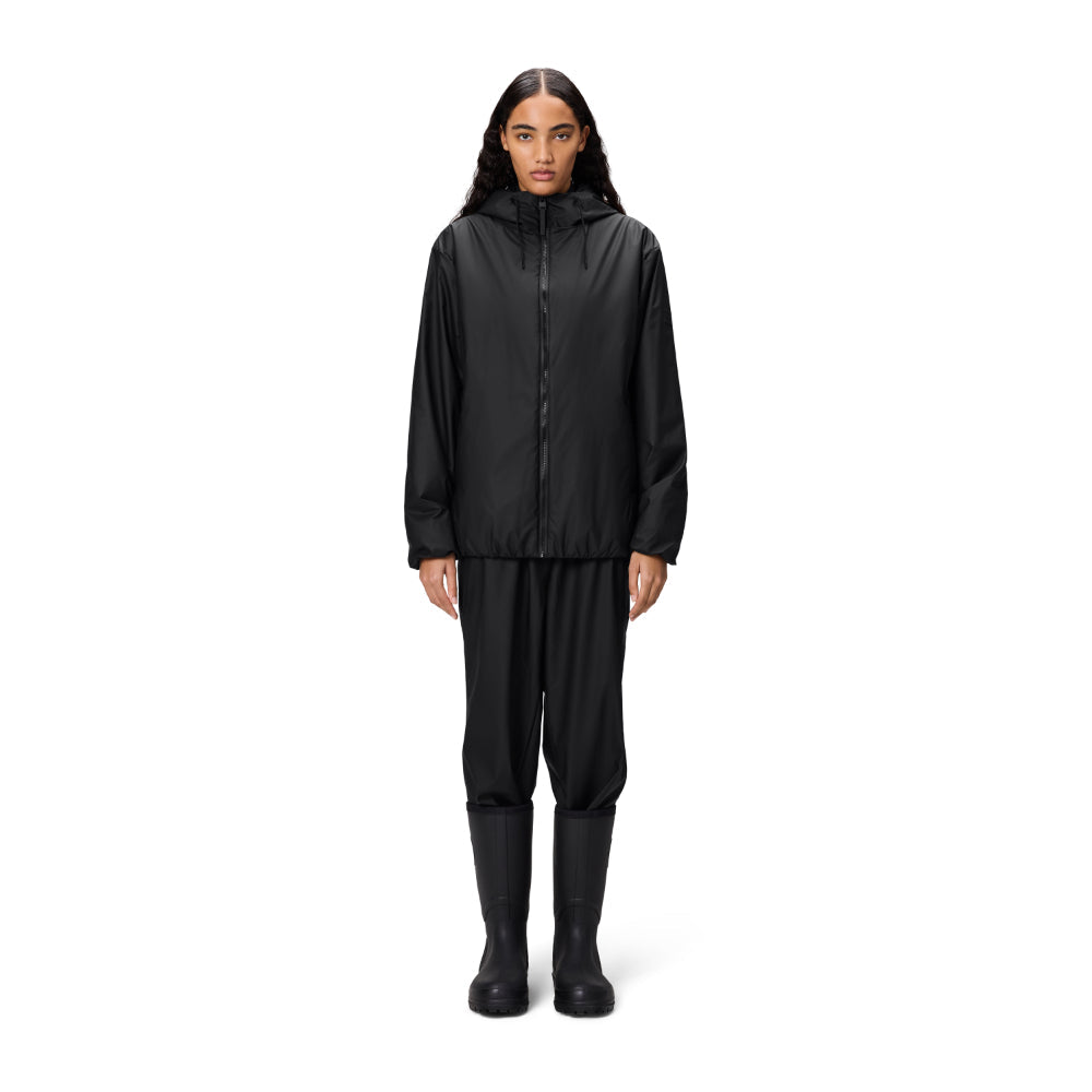 The waterproof jacket is cut from Rains' signature PU fabric with double welded seams. The finish is lightweight with a smooth feel.