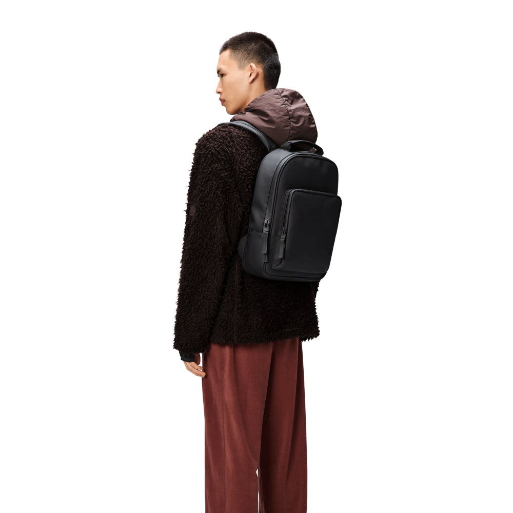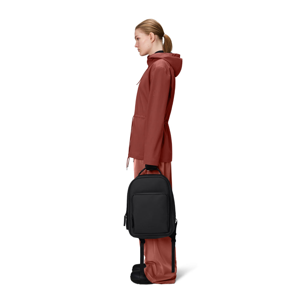 Book Daypack is cut from Rains' signature PU fabric, engineered for carrying strength, durability and a smooth feel.